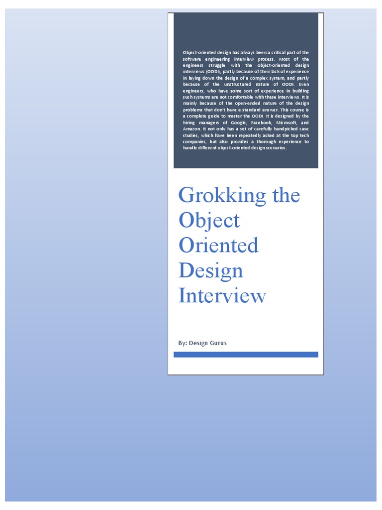 Grokking the object oriented design interview. An Illustrated Guide for Programmers and Other Curious People. Best Practices for Software DevelopersCollection of interview preparation courses for software engineers. Grokking the Object Oriented Design Interview - Learn Interactively wwweducativeio.