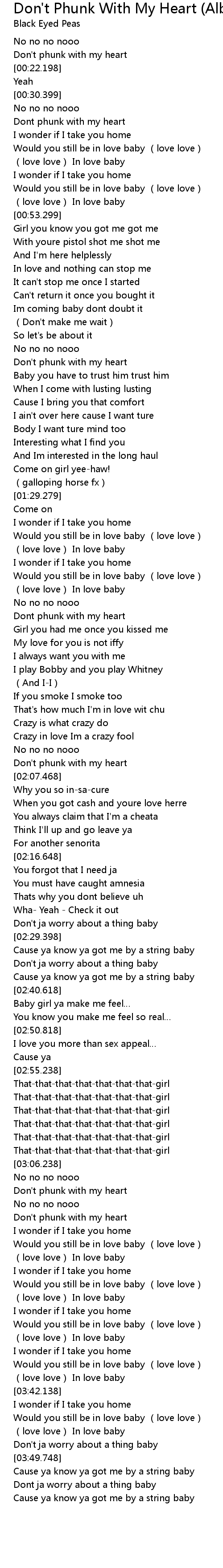 No no no no Dont phunk with my heart Yeah No no no no Dont phunk with my heart I wonder if I take you home Would you still be in love baby.
